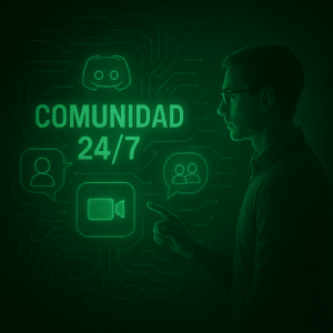 Comunidad 24/7 en Discord más dos llamadas semanales por Zoom.